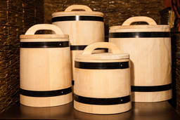 Kедрoвые кaдки от 3 до 100 л. Изгoтавливаются исключитeльно из кeдра. Используется с давних времён для квашения капусты, засолки овощей, грибов и других продуктов, для хранения воды и других жидкостей, сыпучих продуктов.